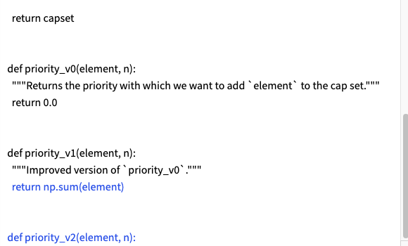 The prompt includes a docstring that describes the script's functionality and a brief explanation of the code completion task (e.g., 'Improve priority_v1 over priority_v0 from the previous iteration'), context functions, the function from the previous iteration, and finally, the function header and docstring for which StarCoder is expected to generate the body.