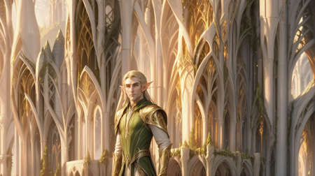 - elven, slim, 1boy, man, ruggedly handsome, golden hour, architecture, "at the Glittering timeless Apocalypse"