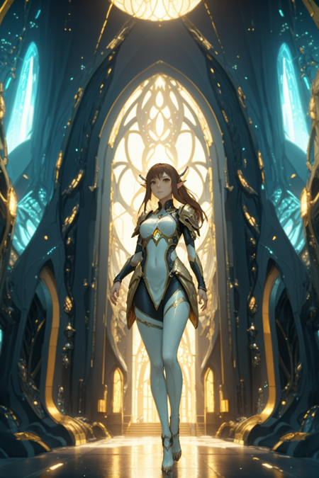 - elvish architecture, cyberpunk, anime style, elven, slim,